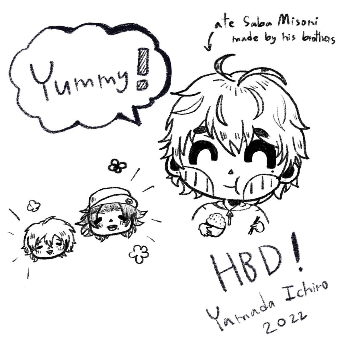 1日遅れたけど、山田一郎誕生日おめでとう~~~~🤲🎂🎊🎉 おなかいっぱい食べてみんなにお祝いされてください☺️✨ #山田一郎誕生祭2022 #山田一郎生誕祭2022 #ヒプマイファンアート 1⃣