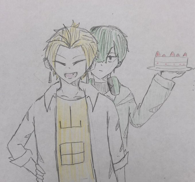 #たくぱん誕生祭2022 #山田誕生祭2022 #メメリ絵 お二人ともお誕生日おめでとうございます!! これからもいっぱい不仲してください! ↓ケーキを食べる二人(汚さと画力の低さには目をつぶってください)