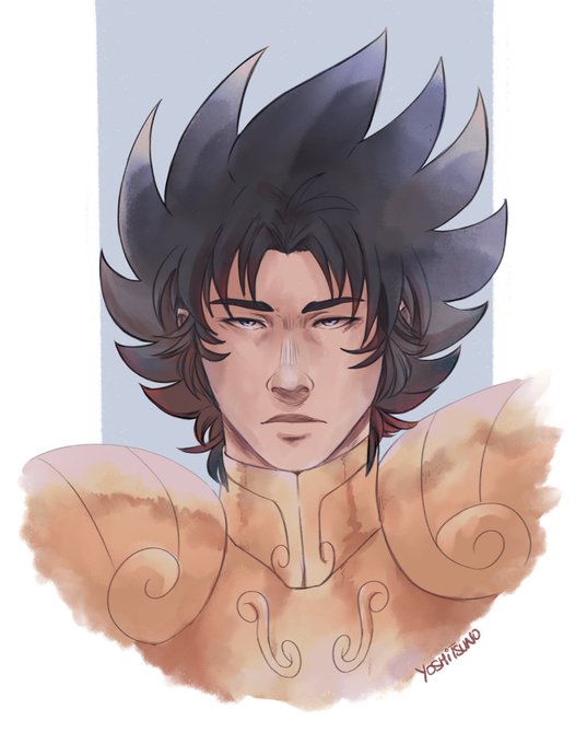 #山羊座のシュラ生誕祭2023(1/12) 「#聖闘士星矢」より、#カプリコーンのシュラ さん。 「潔く死ね!このシュラの聖なる剣、エクスカリバーで!」 久しぶりにゴールドクロス描いたら、なんか前より塗り方が下手になった気がする😇 #みんなで楽しむTwitter展覧会 #絵描きさんと繋がりたい #イラスト