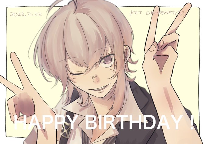 Happy Birthday, Kei~💖 I have a bigger project I wanted to get done in time for his birthay, but it still needs some work, so have some cat ears and "corndog coat" art for now~ #岡崎契生誕祭2023 #岡崎契誕生祭2023