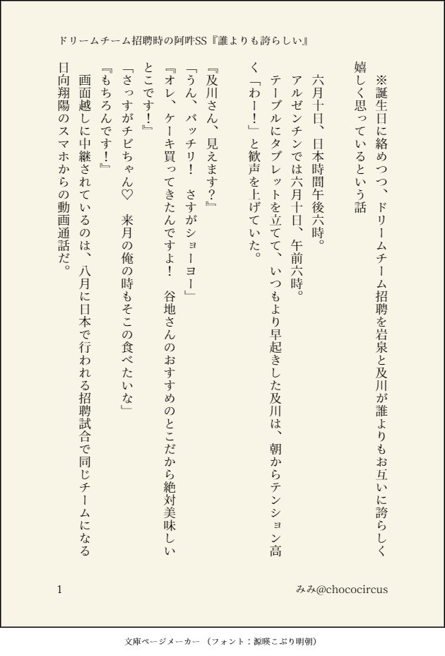 2022招聘試合の阿吽ss『誰よりも誇らしい』 privatter.net/p/8921874 ※ログイン公開/画像同文 岩ちゃん誕生日に絡めつつ、ドリームチーム招聘を岩泉と及川が誰よりもお互いに誇らしく嬉しく思っていて10年ぶりの共闘を楽しみにしまくっている2022年の阿吽のお話 #岩泉一生誕祭2022 #岩泉一誕生祭2022