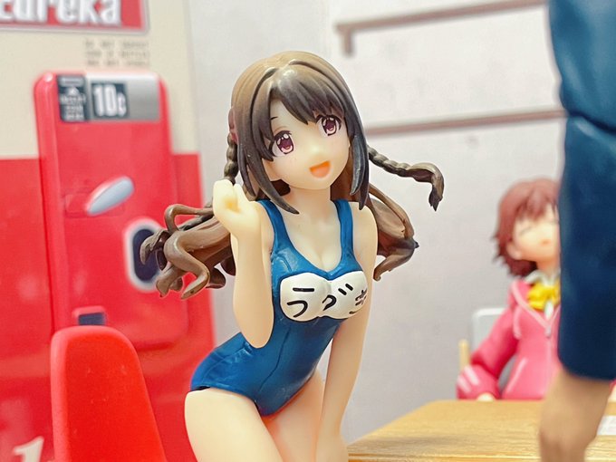 お題「怪奇」 「あ、プロデューサー。これどうですか?」 自分を普通の女の子と評していた娘が名前入りのスク水を着たりHOT LIMITの衣装を着たり、またはサイバスターに乗ったり。 この世は複雑怪奇なり #夜のフィギュア撮影会 #オモ写 #島村卯月 #島村卯月生誕祭2022
