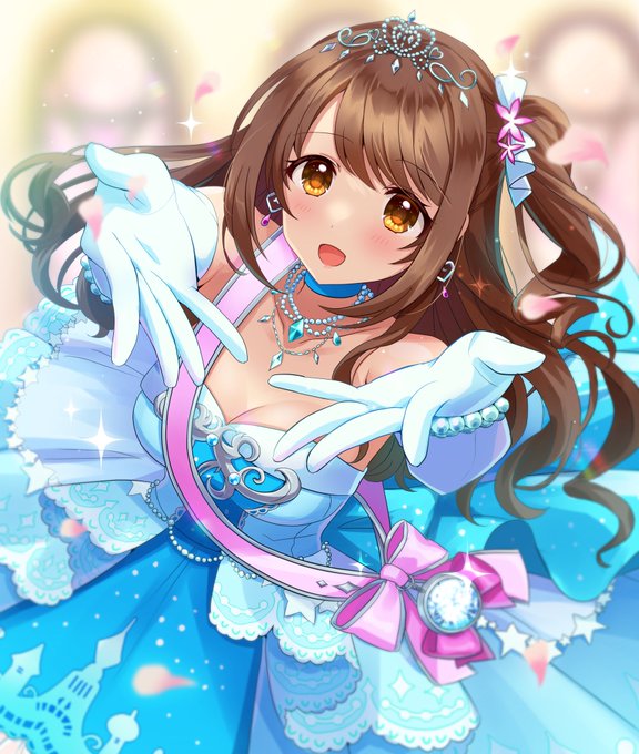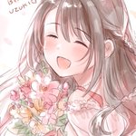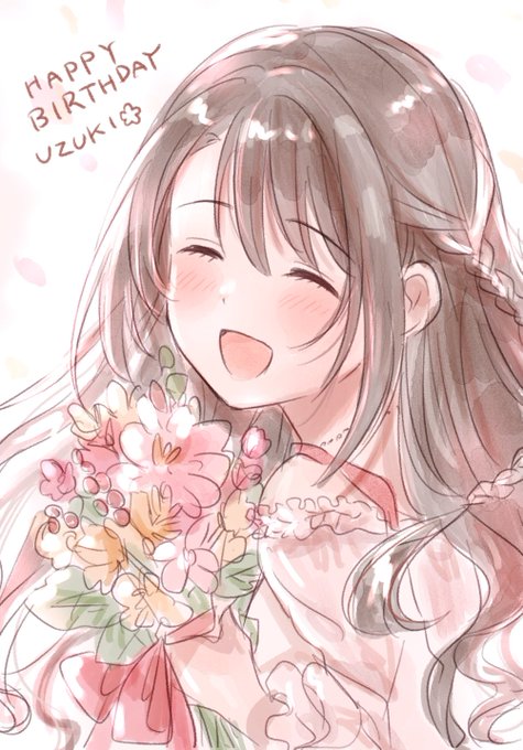 島村卯月さんお誕生日おめでとうございます。 頑張る姿が尊くかわいいキュートさん。 何かこう二人でちょっと親密に話した後、 帰り際卯月に腕つかまれて見つめられたい #モバマス版深夜の真剣お絵かき60分1本勝負 #島村卯月生誕祭2022