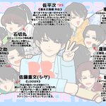 活動8周年だったので、8日前から崎山さんが演じた好きなキャラで8時(20時)にバースデーカウントダウンをし、こちらのイラストでは個人的にめちゃくちゃ好きなキャラクター8人を描かせて頂きました✍️🥰💕 いや描いた以外にも好きなキャラいるけどね!!描ききれなかった…!笑 #崎山つばさ誕生祭2022