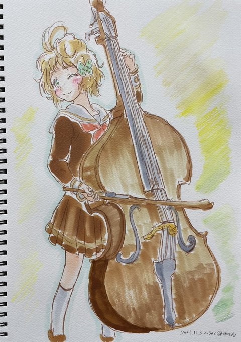 みどりちゃん、お誕生日だったのですね。遅くなってごめん。みどりちゃんの、まっすぐな所、とても好きです。過去絵ですが。初めて楽器も描いて、ドキドキしました! #川島緑輝誕生祭2021 #川島緑輝生誕祭2021