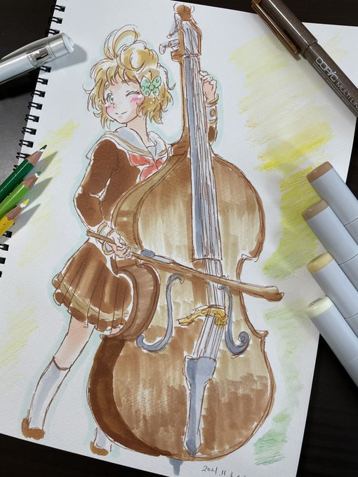 焼酎が効いて寝落ち寸前ですが… 11月3日は川島緑輝の誕生日!と言うわけで、急ぎお祝い絵を描きました!酔っ払ってヘロヘロですが〜 #川島緑輝生誕祭2021 #響けユーフォニアム #川島緑輝