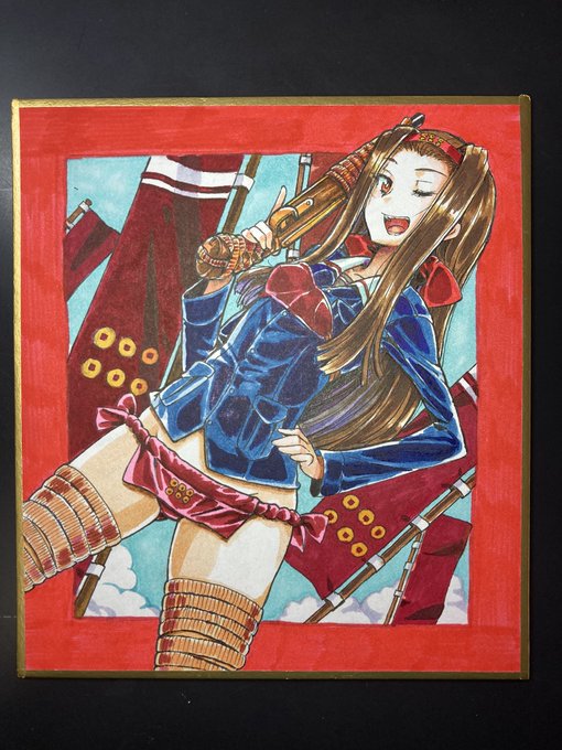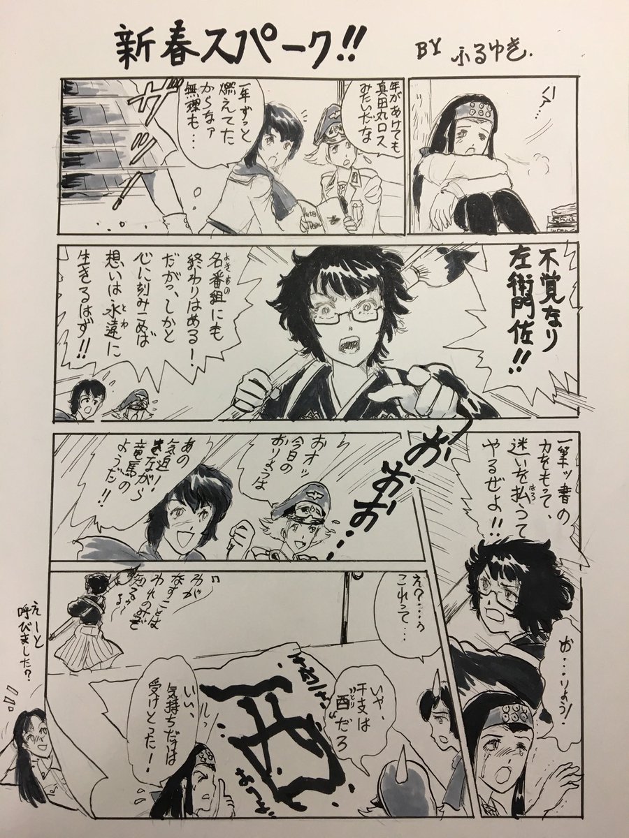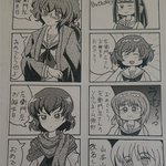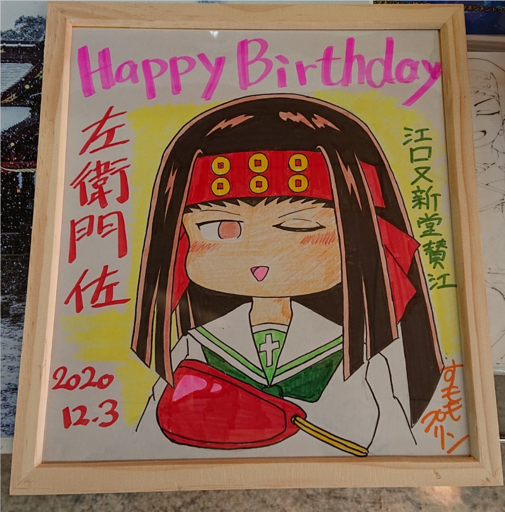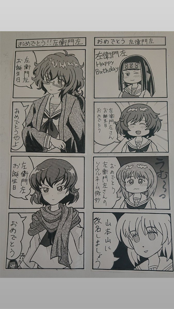 お題「左衛門左」 左衛門左♥️happy♥️birthday♥️ 夜勤明けで四コマ漫画を仕上げました。色紙画は、去年江口又新堂さんにお渡しした左衛門左です。 #mow版深夜のお絵描き60分一本勝負_20211202 #ガルパン四コマ漫画 #mow版深夜のお絵描き60分一本勝負 #左衛門佐生誕祭2021 #左衛門佐誕生祭