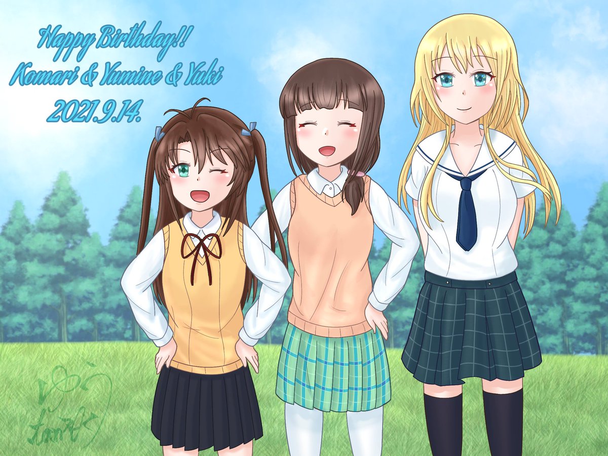 今日は3人です!!小鞠ちゃん、裕美音ちゃん、夕姫ちゃん、みんなおめでとう!! #越谷小鞠生誕祭2021 #のんのんびより #布田裕美音生誕祭2021 #ステラのまほう #野崎夕姫生誕祭2021 #八月のシンデレラナイン #ハチナイ #ゆう誕イラスト #アニメ好きと繫がりたい #イラスト好きさんと繋がりたい