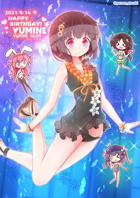 🎂水着姿のゆみねちゃん描けました! 今年もお誕生日おめでとう!裕美音ちゃん!🎉 たまちゃん、はーちゃん、ののちゃんもいるよ!⭐️ pixiv.net/artworks/92752… #ステラのまほう #布田裕美音生誕祭2021