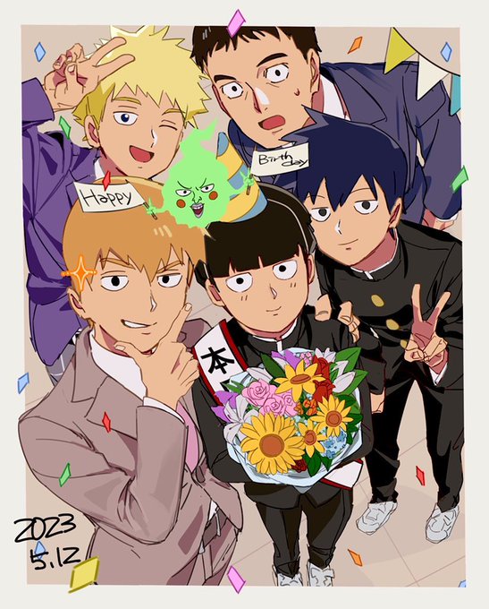 Reigen: Quick everyone! Let’s stick birthday wish on Mob as much as possible! #影山茂夫生誕祭2023 #影山茂夫誕生祭2023