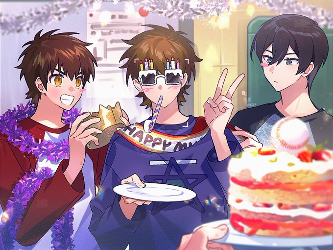 #御幸一也生誕祭2022 #黒尾鉄朗生誕祭2022 #橘真琴生誕祭2022 happy birthday to you~⚾️🏐🏊♂️ Champion!⚾️🥇Congratulations!🎊