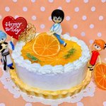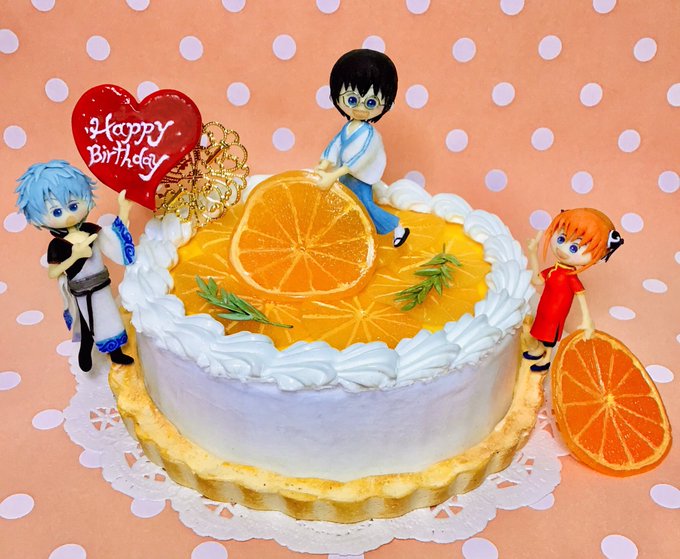 今日の仕事は🍊ケーキのデコレーション🎂 この❤️バースデープレートどこにさすんだぁ? オレンジもう1枚持ってきたアル🎶 ところでこのケーキ、どなたからの依頼ですか? おめーのバースデーケーキ🎂だよ、新八👏 誕生日おめでとう🎉新八ー‼︎ #志村新八誕生祭2022 #志村新八生誕祭2022 #粘土
