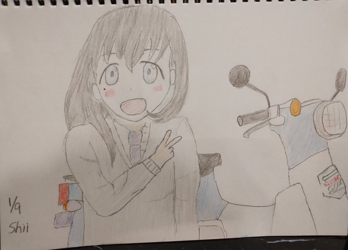 恵庭椎ちゃんの誕生日に合わせて、顔で笑って心で泣いてる椎ちゃん描きました! お誕生日おめでとうございます!! English Translate to ALT #スーパーカブ #恵庭椎生誕祭 #恵庭椎生誕祭2023 #Super_Cub