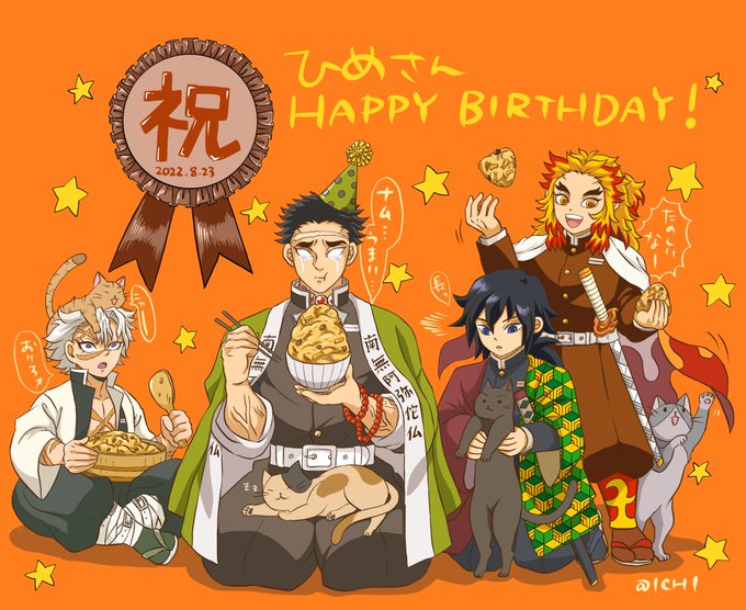 超絶カリスマ的存在のようで🐱( '-' 🐱 )ネコチャン大好きで柱に慕われるみんなだいすき行冥さん🌸 お誕生日おめでとう🎉 #悲鳴嶼行冥生誕祭2022 #悲鳴嶼行冥生誕祭 #行冥さんおめでとう #8月23日は悲鳴嶼行冥の誕生日
