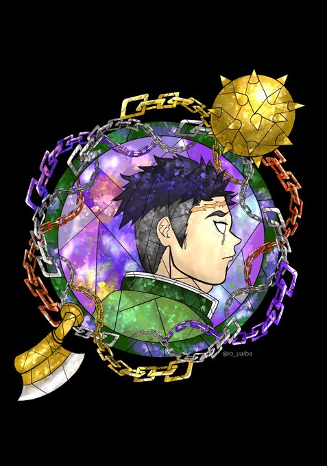 #悲鳴嶼行冥生誕祭2022 #悲鳴嶼行冥誕生祭2022 自分を「疑り深い」と言っていたのは意外でしたが、それだけ本質を見て来た人なんだと思います 心優しい悲鳴嶼さん、仲間や🐈⬛チャンと楽しく過ごせますように 模写アレンジ 背景は月下美人(素材) #闘龍書体 表紙チャレンジ…鎖なかなかでしたー!