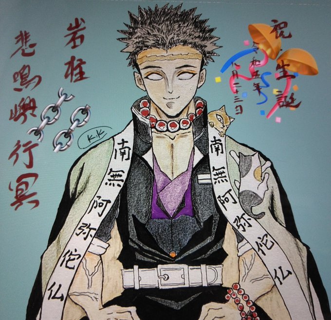 Happy Happy Birthday ひめじまさん~🎉 お祝いの気持ちこめて初めて描きました😆アイビスのトレス素材使用👆 ハシラ稽古楽しみにしてます☺️ #悲鳴嶼行冥誕生祭2023 #悲鳴嶼行冥生誕祭2023