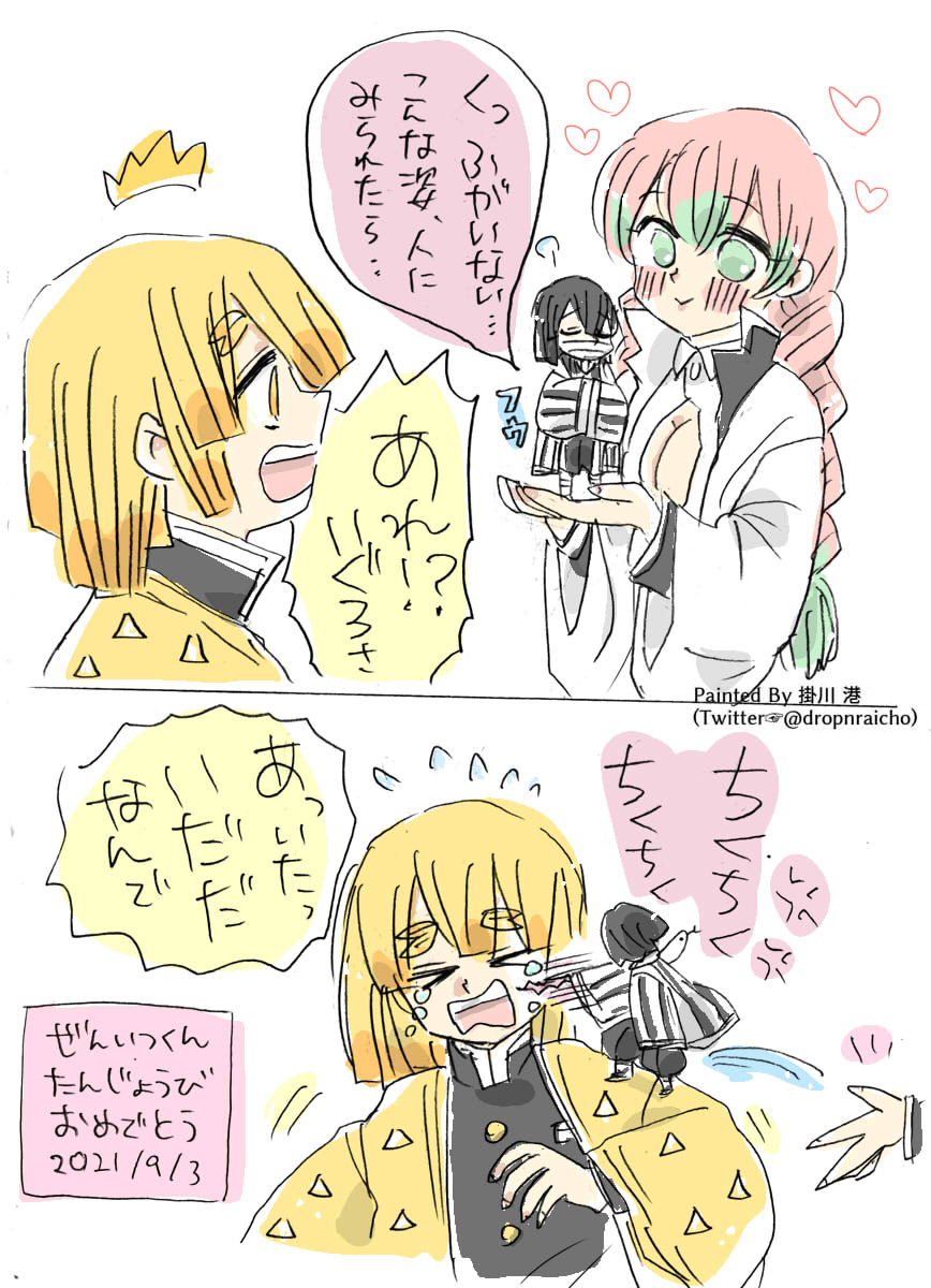 安定の遅刻…ッ おたおめでしたぁ!!早くアニメで三味線掻き鳴らしてる姿が見たいです!!!あとテンションで描いてたら善照が乱入してました……楽しかった😇😇😇😇💜 #我妻善逸誕生祭2021 #我妻善逸生誕祭2021