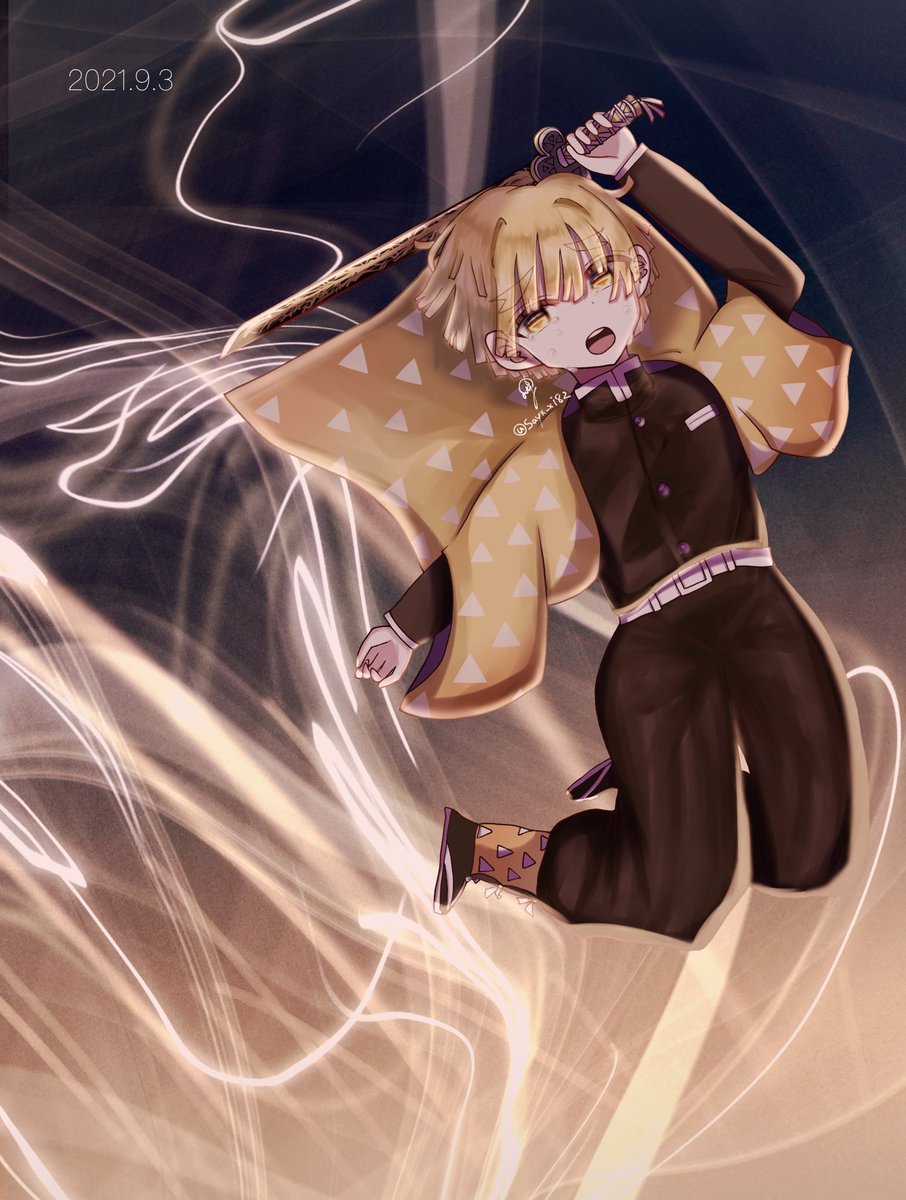 内緒なんですが… 実は私、技の中で雷の呼吸が 1番好きなんです…🤫笑笑 無限列車の善逸は最高にかっこ良かったよ💕💕 善逸、お誕生日おめでとう🎂 絵はぎゅぎゅっとアクキーの模写です #我妻善逸生誕祭2021 #我妻善逸誕生祭2021