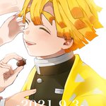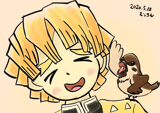 #我妻善逸誕生祭2021 #鬼滅の刃イラスト #鬼滅の刃 遅くなったけど。善逸さん見てくれるかなー。 お誕生日おめでとう🎉 いちばんに食べられるてしまうのではないかと不安な善逸さん しばらく食べられないだろうと安心している善逸さん チュン太郎が来て喜んでいる善逸さん。だよ。