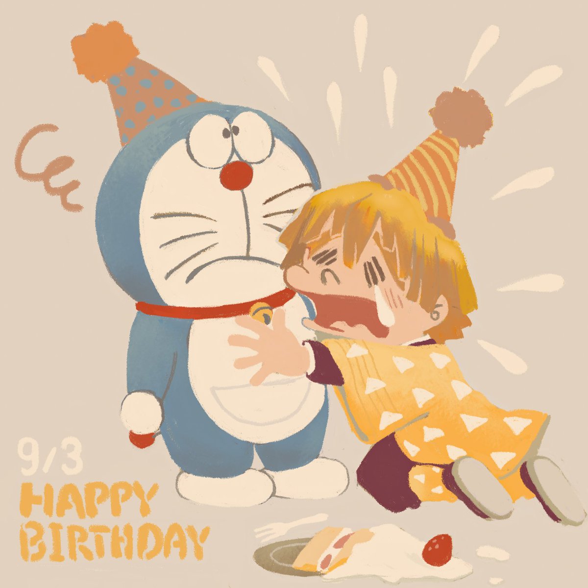 安定の遅刻…ッ おたおめでしたぁ!!早くアニメで三味線掻き鳴らしてる姿が見たいです!!!あとテンションで描いてたら善照が乱入してました……楽しかった😇😇😇😇💜 #我妻善逸誕生祭2021 #我妻善逸生誕祭2021