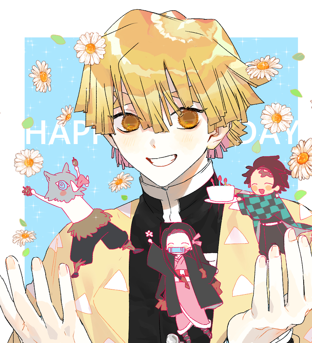 #我妻善逸誕生祭2022 #我妻善逸誕生日2022 誕生日なので🎴🐗にマッサージしてもらってる⚡ 皆様の誕生日イラスト素敵✨私も素敵イラスト描くぞ と思って描いたの・・・素敵どこいったw