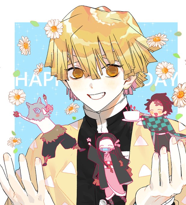 大遅刻ですが... 善逸!お誕生日おめでとう🎂 公式絵のキメキメ善子を禰󠄀豆子ちゃんがおにーちゃんあれなに?って顔してて炭治郎が苦笑いだったの最高だった🤣 #我妻善逸誕生祭2022 #我妻善逸生誕祭2022 #我妻善逸 #イラスト #ファンアート