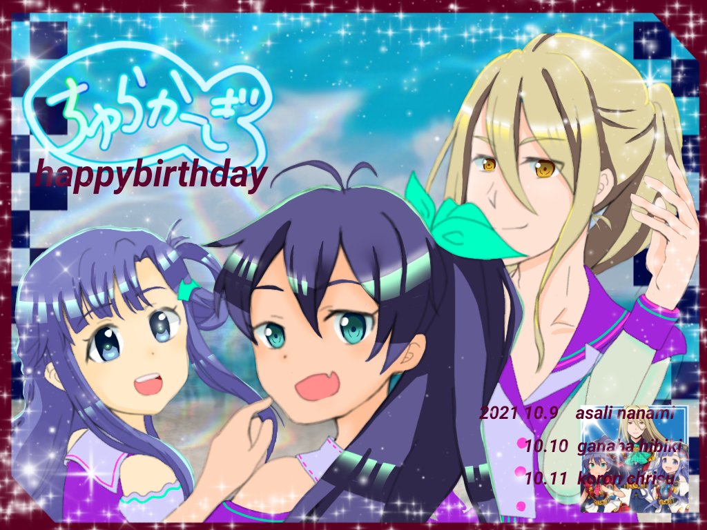 描けたー! 七海ちゃん、響、クリスさんお誕生日おめでとうございます!🎉😉❤️ 3人一緒に失礼します! 改めてイラストでお祝いです!! #浅利七海生誕祭2021 #我那覇響生誕祭2021 #古論クリス生誕祭2021