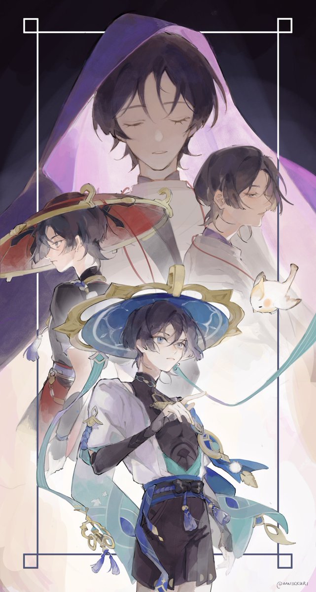 Princess Wanderer and his threee buddies -👀 #genshinimpact #genshinimpactcc #scaramouche #wanderer #放浪者生誕祭2023 #原神 #wandererfanart