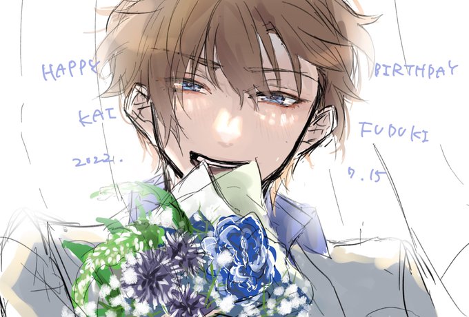 かいくんお誕生日おめでと~↷🐟 今年も誕生日のお祝いができて幸せです p:1枚目⇒Jさん(@SrSO4_celestite ) 2.3枚目⇒宙猫さん(@spacecat_pa72 ) #文月海生誕祭2022