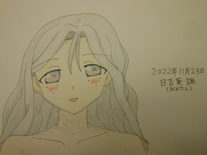 #ぴよたん生誕祭2022 #日吉葵生誕祭2022 小さい紙に大きいOPPAI ( ´ ▽ ` ) 髪の毛は水彩のぎんいろで塗ってあります、無駄に。 twitter.com/nabeyu00/statu…