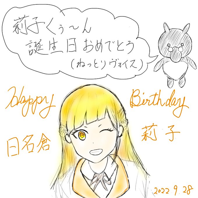 莉子ちゃん誕生日おめでとうヽ(゚∀゚)ノ パッ☆ 雑いけどせっかくなので描いてみた_(:3」∠)_ #CUEイラスト部 #CUE #キュー #日名倉莉子 #日名倉莉子誕生祭 #日名倉莉子生誕祭 #日名倉莉子誕生祭2022 #日名倉莉子生誕祭2022