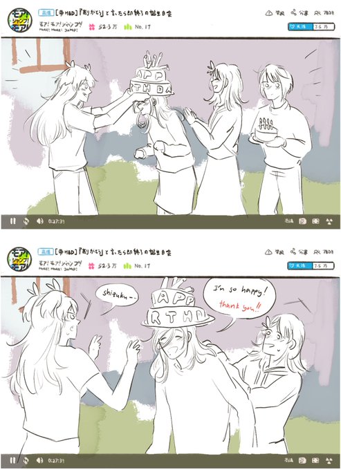 a birthday prank where every time shizuku says “thank you” they have to restart the party #prsk_FA #日野森雫誕生祭2021