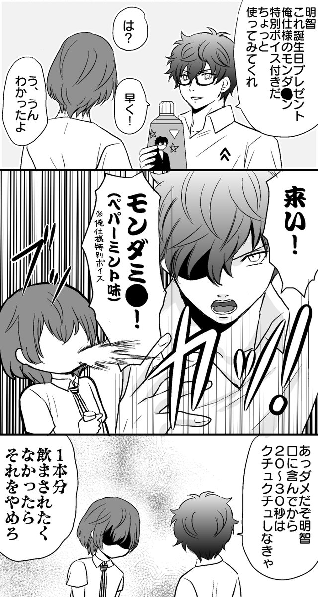 Happy (belated) birthday to Sea and Akechi!! 🥳🧁🎉🎉🎉 I started this literally 5 months ago, please enjoy my first and last comic 😂 #persona5 #shuake #明智吾郎誕生祭2022 (1/2)