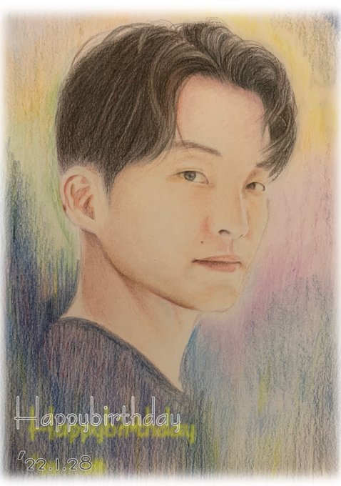 源さんがなるべく笑顔で穏やかに過ごせますように☺️ 滑り込みでなんとか仕上がった💦 お祝い絵にしてはちょっと暗めだけど、源さんの作り出す色とりどりな景色(闇も含めて)ってイメージです。 #星野源 #星野源誕生祭2022 #色鉛筆画