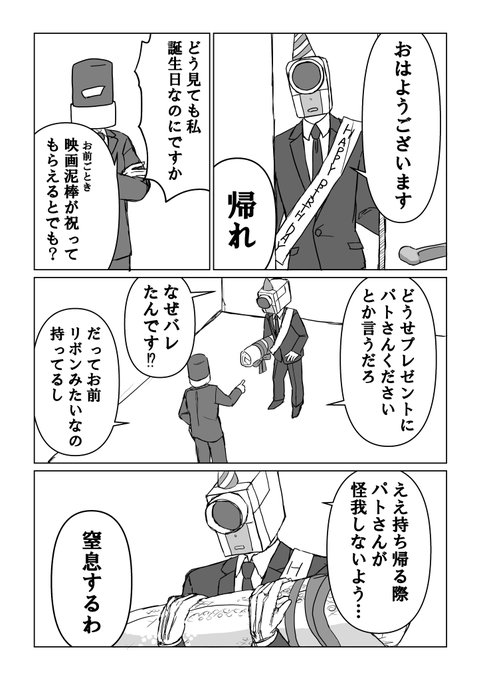 全2pなんだけど間に合わないから冒頭だけ先に🙏💦 『異形頭』の呼び方は愚かそのジャンルすら知らなかった頃から映画館のスクリーン越しに会っていた彼等、可愛いやり取りを嗜んでから上映を楽しんだ思い出😌 パト男さん撃たれてるシーンので恐縮ですがおめでとう御座います🎉 #映画泥棒誕生祭2023
