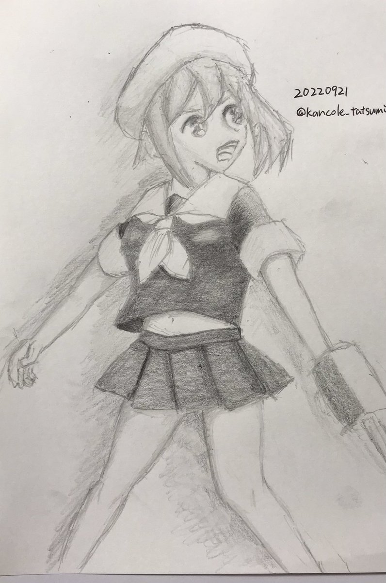 司令官に「愛してる」とハンドサインを送る春雨ちゃん #艦これ版深夜の真剣お絵描き60分一本勝負 #艦これ版真剣お絵描き60分一本勝負_20220921 #艦これ #春雨 #春雨生誕祭 #春雨生誕祭2022 #色鉛筆