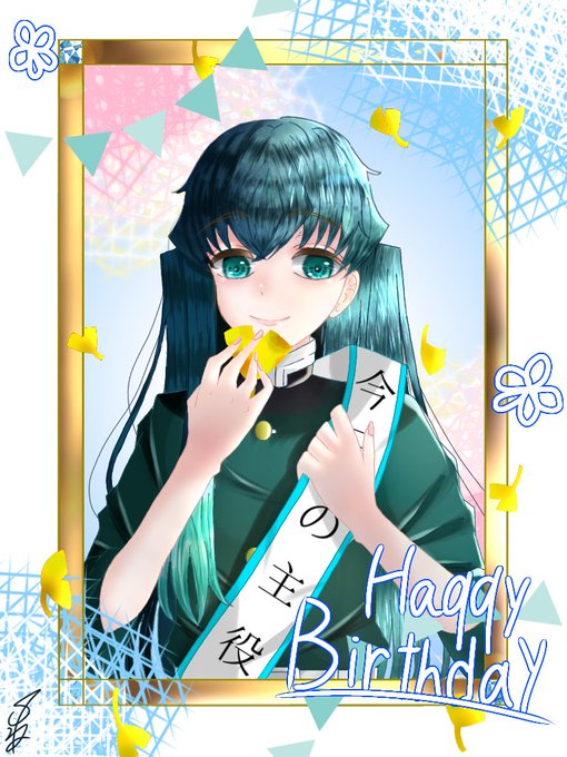 去年のむいくんHAPPYBIRTHDAYのイラストです!(何故に今?と思ったけど) 一年前だから下手です!でも、目と髪はうまく書けたのでは?と思ってます! #時透無一郎 #時透無一郎誕生祭2021 #鬼滅の刃イラスト