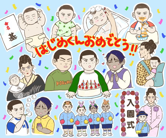 生まれてきてくれてありがとう‼️🎉🎊🎂㊗️愛に溢れたはじめちゃんを描きたかった😊💗 年齢操作・捏造親子注意(フミエ先生が母ちゃんです) #月島軍曹生誕祭2022 #月島軍曹誕生祭2022 #月島基生誕祭2022 #月島基誕生祭2022