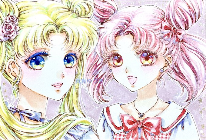 お誕生日おめでとうございます🌙🐰 90年代当時のアニメ雑誌の表紙より。うさぎちゃんとちびうさちゃん。 (作画は只野和子さんと伊藤郁子さん) #セーラームーン30周年 #月野うさぎ誕生祭2022 #ちびうさ誕生祭2022