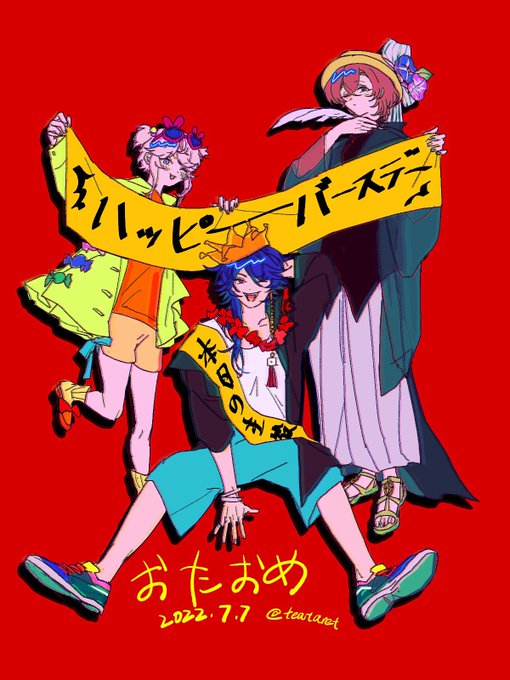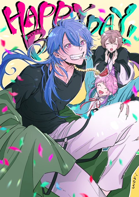 #有栖川帝統誕生祭2022 #三途春千夜誕生祭2022 遅れたけど&過去絵だけど お二方はぴばー!!🎉 相棒もお祝い! 驚いてるけど! ん! また後日です! 今日は休みだけど久々お出掛けどすえー!!✨