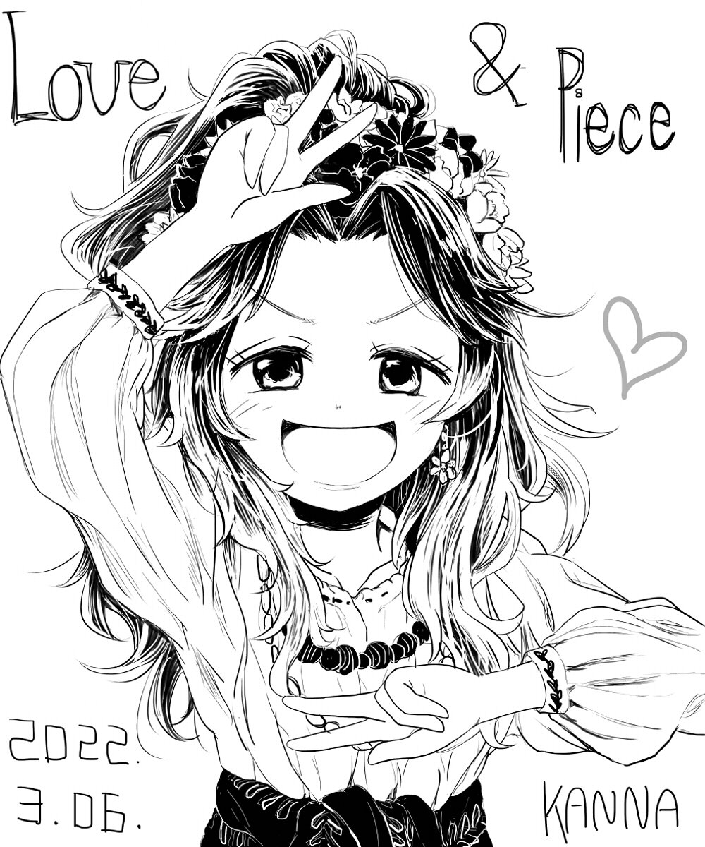 柑奈ちゃんお誕生日おめでとう🎉 『ラブ❤️&ピース✌️』 誕生日を祝えられる大切さ 彼女に今この世界はどう見えているのか そのような思いを込めて描きました。 #有浦柑奈生誕祭2022 #有浦柑奈誕生祭2022 #有浦柑奈誕生日 #有浦柑奈