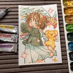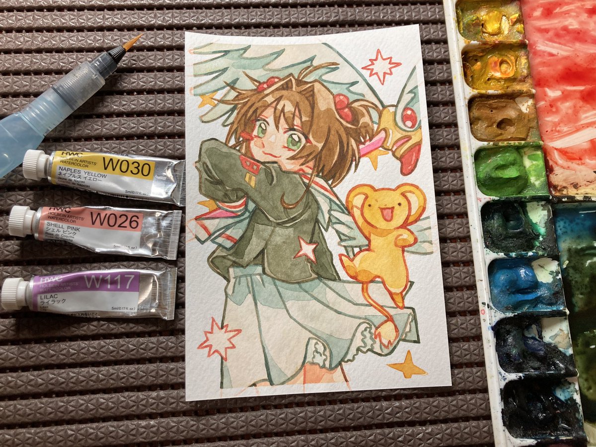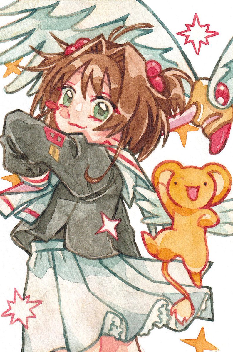 さくらちゃんとケロちゃん (Sakura Avalon//Keroberos) ٭❀*٭❀.✿.❀*٭❀* さくらちゃんお誕生日おめでとうございました🎂🌸 小さい頃から大好きな作品なので描いてみました。このコスチュームが1番好きです ٭❀*٭❀.✿.❀*٭❀* #木之本桜生誕祭2023 #アナログ絵 #Cardcaptor