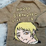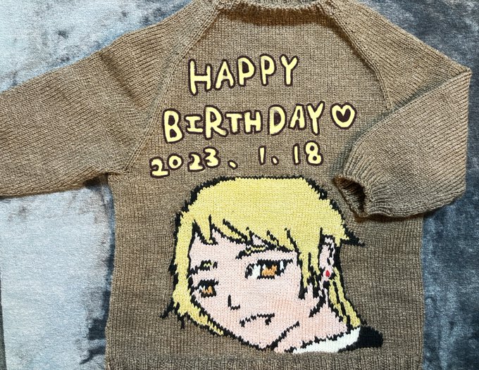 本多行くんお誕生日おめでとう!!君のことを知ってから人生が楽しくなったよー☺️🌟👍今年は君の顔編み込んだぞ!文字も入れたかったけど時間切れだったから文字は書いたぞ!!一応着れるけど、私が太ったため私は着られないよ! おめでとーーーーーー! #本多行誕生祭2023 #本多行生誕祭2023