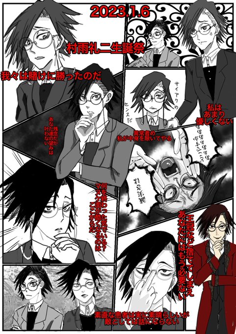 村雨先生、ハッピー・バースデー! 今年は主な患者とファンを添えて!! 101話のお兄さんへの感情は、衝撃的でした。来年は、是非お兄さんファミリーと一緒に祝わせてください!! #村雨礼二誕生祭2023 #ジャンケットバンクFA #ジャンケットバンク