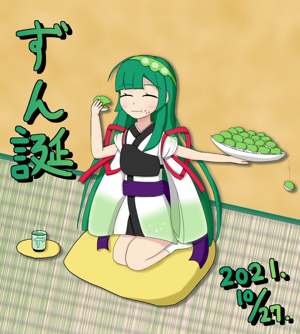 ずんちゃんお誕生日🍰と、10周年おめでとう🎉 ずんちゃんの影響でずんだ餅やずんだ商品、東北の事が好きになったよ! これから先も、ずんちゃんのことお祝いするね🎀 #ずん誕2021 #東北ずん子生誕祭2021 #東北ずん子誕生祭2021