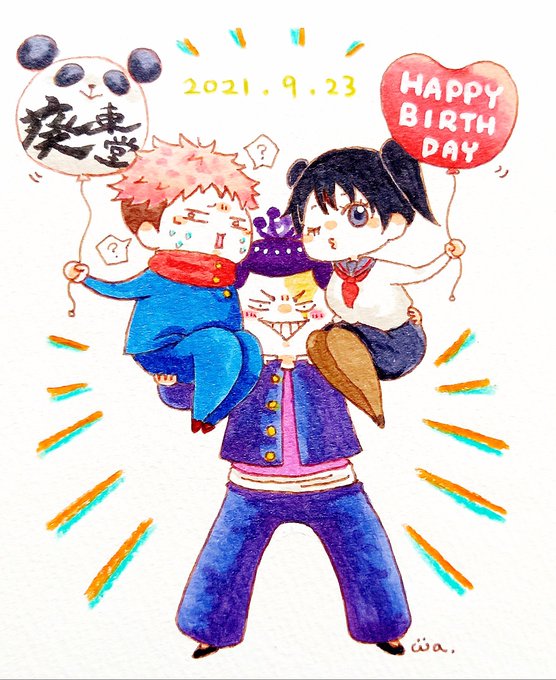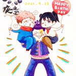 時間なくてデフォルメにしちゃったけど祝わせておくれ🎂 調子に乗ってまた存在しないコラボ😂最近の子はこの子たち知ってるのかな…そして東堂といえば私の中ではこの顔w 君もまた戦えるって信じてるよ! #東堂葵誕生祭2021 #呪術廻戦ファンアート