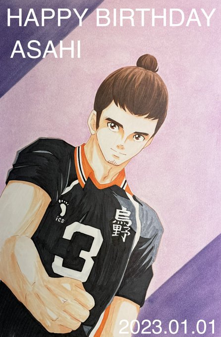 旭さん〜誕生日おめでとう〜(*´꒳`*)🎂🎁🎉 烏野のエース! 心優しくてここぞという時は決める頼もしい先輩! お洒落な旭さんは格好良いデザイナーです。 #ハイキュー #haikyuu #東峰旭誕生祭2023 #東峰旭生誕祭2023