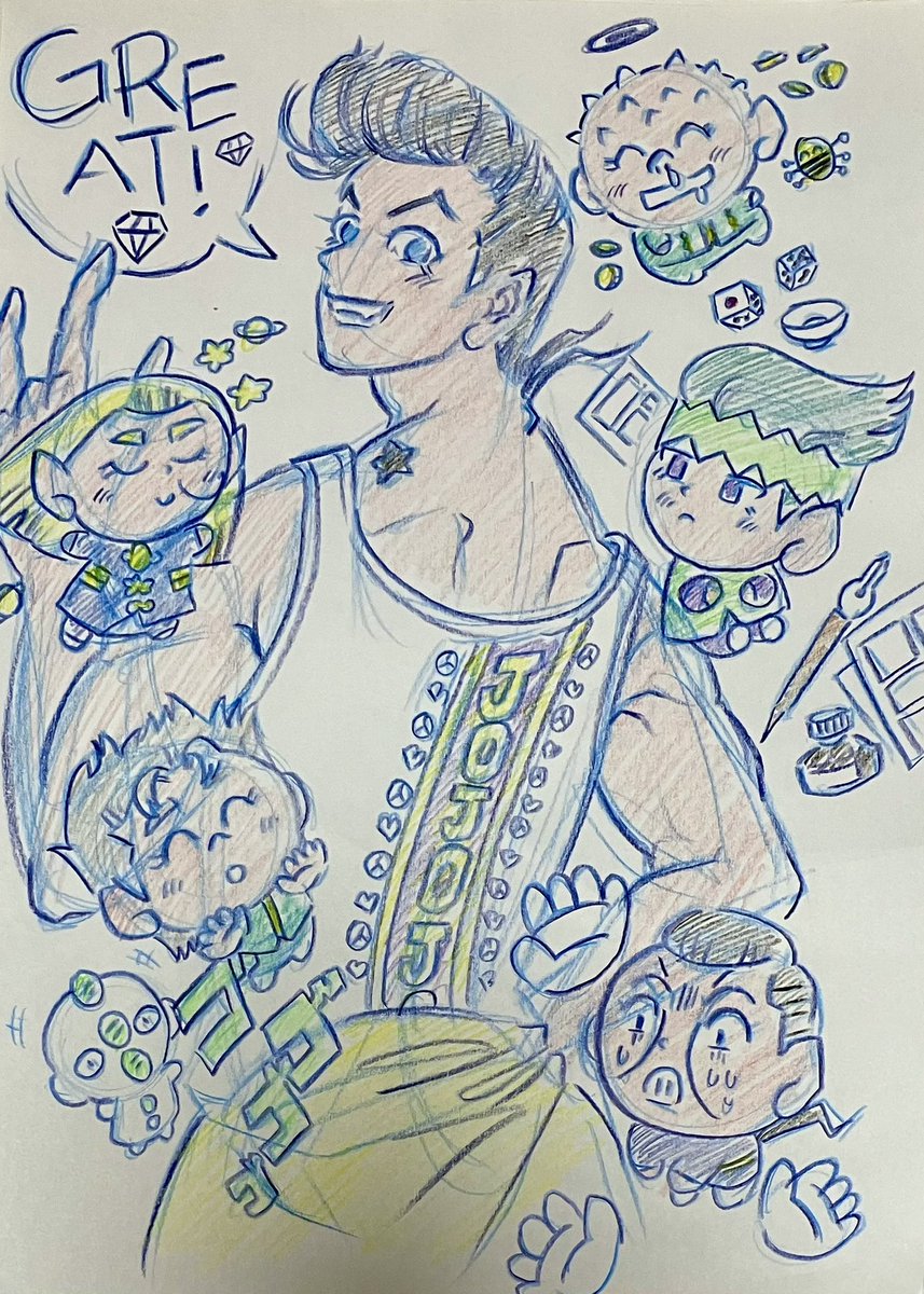 珍しくがんばって承太郎さん以外を描きました🎉 じじいの息子はごついに違いないと思い込み過ぎて、なんか厳つい💪💪💪💪 画像のサイズを大変小さく間違ってたのは秘密です。 #東方仗助生誕祭2023 #東方仗助生誕祭