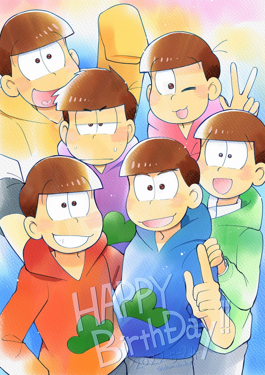 おめでとーーーーー!!!! スランプになっても描かせてくれてありがとう ずっと大好きだよ❤️💙💚💛💜💖 #松野家六つ子生誕祭2022 #おそ松さん生誕祭 #5月24日はおそ松さん6つ子の誕生日 #六つ子生誕祭