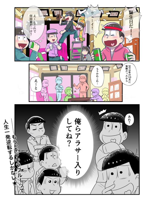 誕生日にファンのためにツイッターやってくれた六つ子ちゃん偉すぎるので存分に飲んで騒いで欲しい🎉 #松野家6つ子生誕祭2022 #5月24日はおそ松さん6つ子の誕生日 #おそ松さん生誕祭